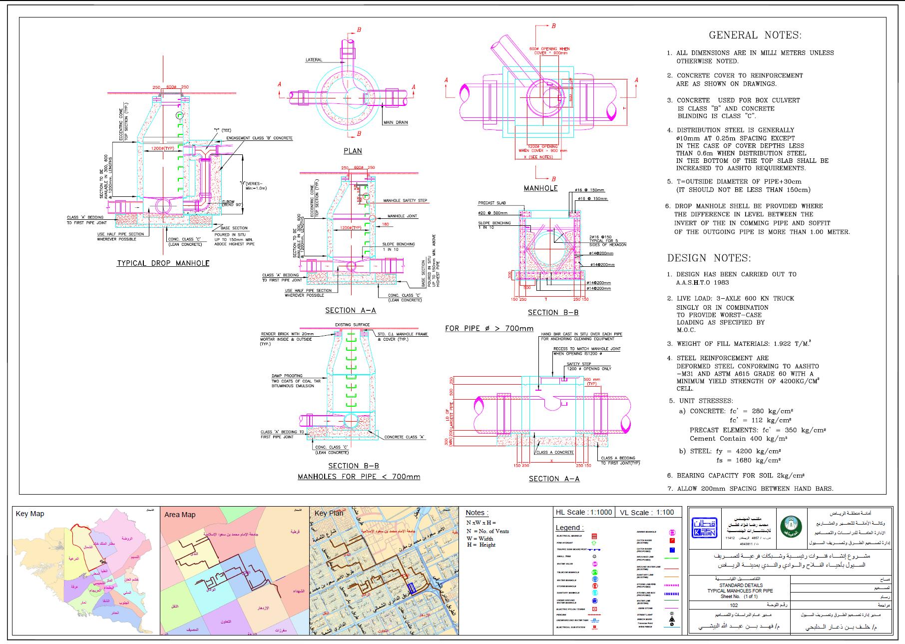 - عمل تصاميم شبكات تصريف مياه السول والامطار وتجهيز المخططات التنفيذة