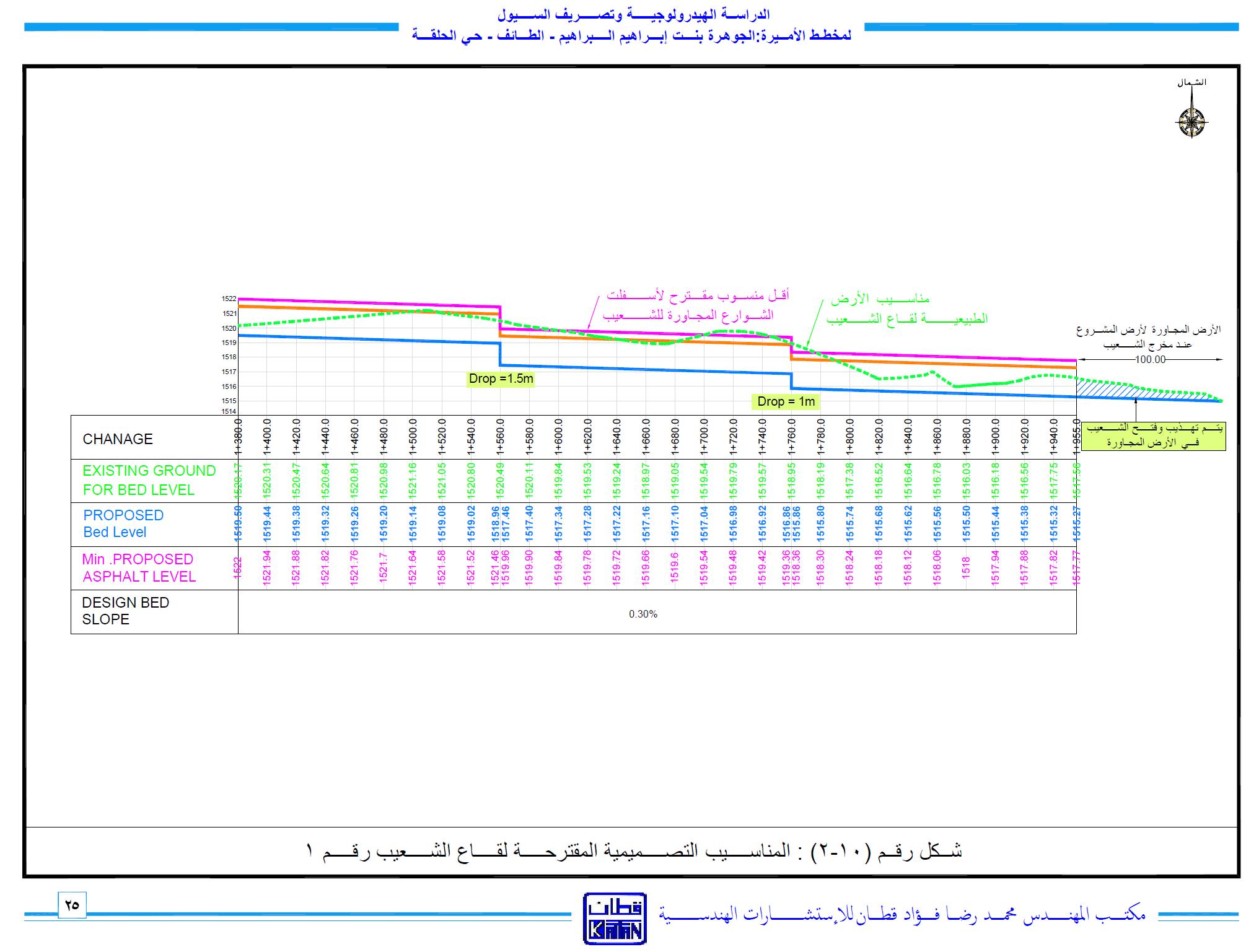 - التوصيات اللازمة لحماية ارض المشروع من مخاطر السيول ووضع الحلول كتنفيذ شبكات مغلقه او مفتوحة ووضع عبارات في اماكن التقاطعات