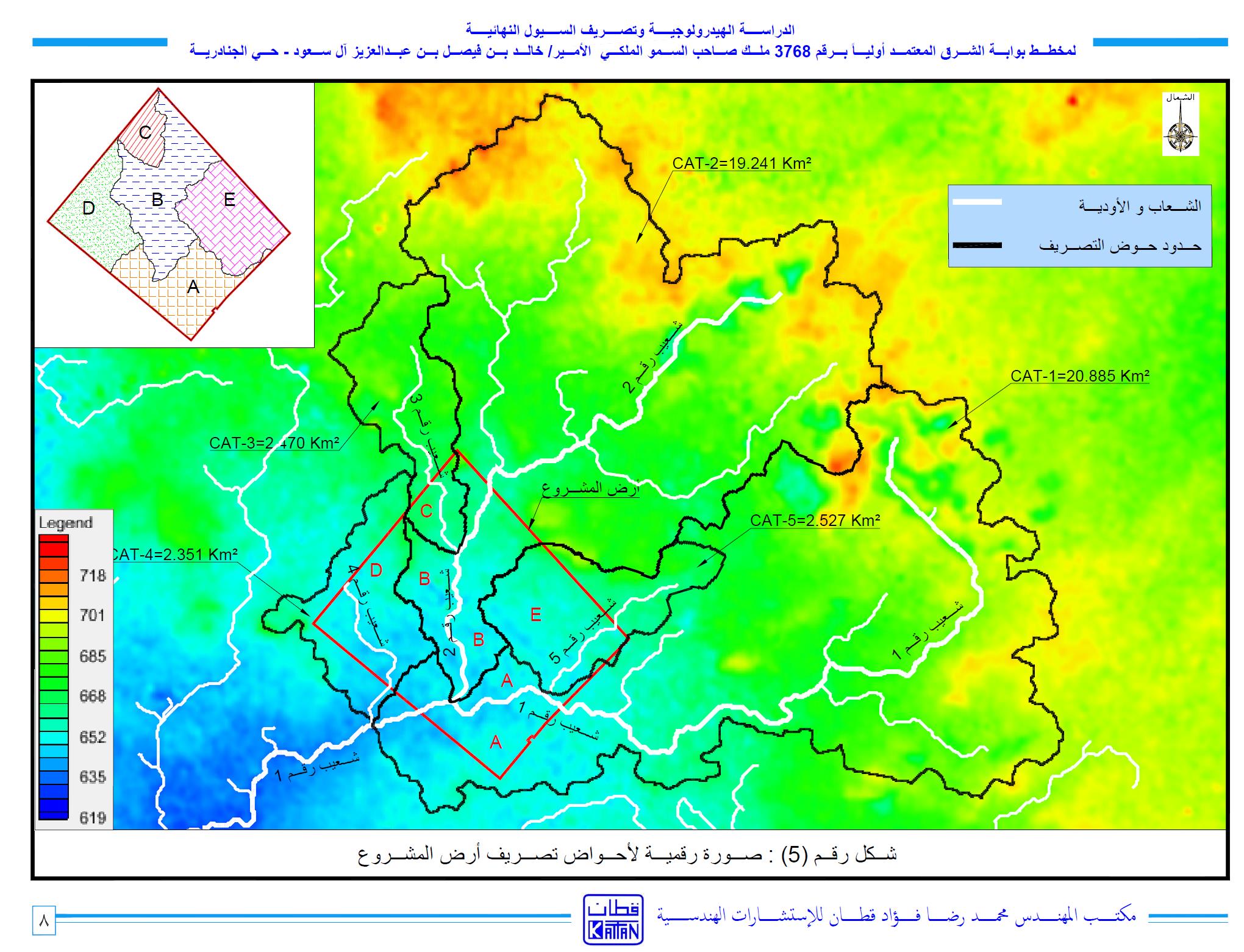 - المرحلة الثانية: مرحلة تحليل المعلومات ودراسة المنطقة وضمان تصريف السيول من المخطط والمناطق المجاورة واقتراح الحلول لتصريف سيول المخطط ومعالجة تأثير المخططات المجاورة على المخطط.