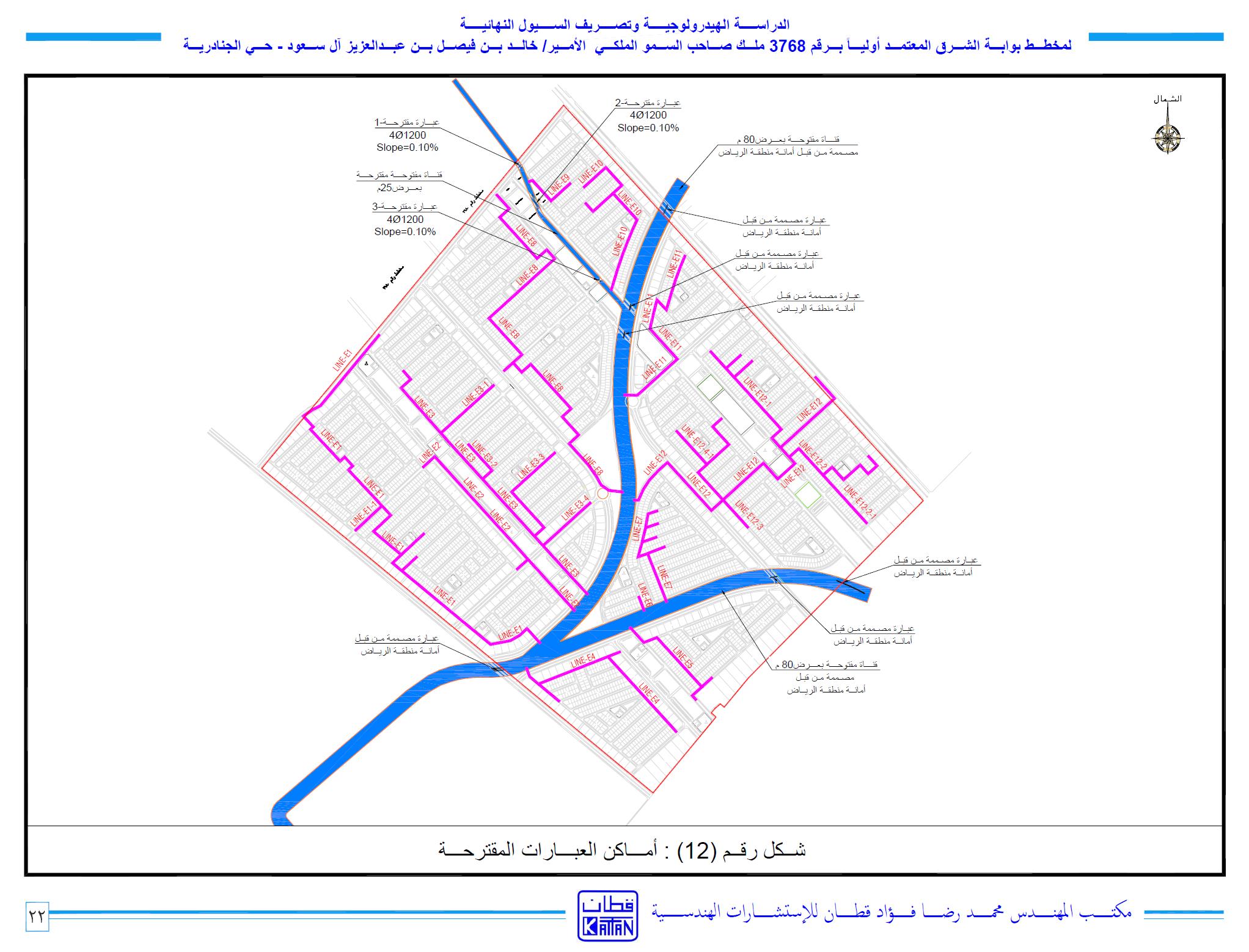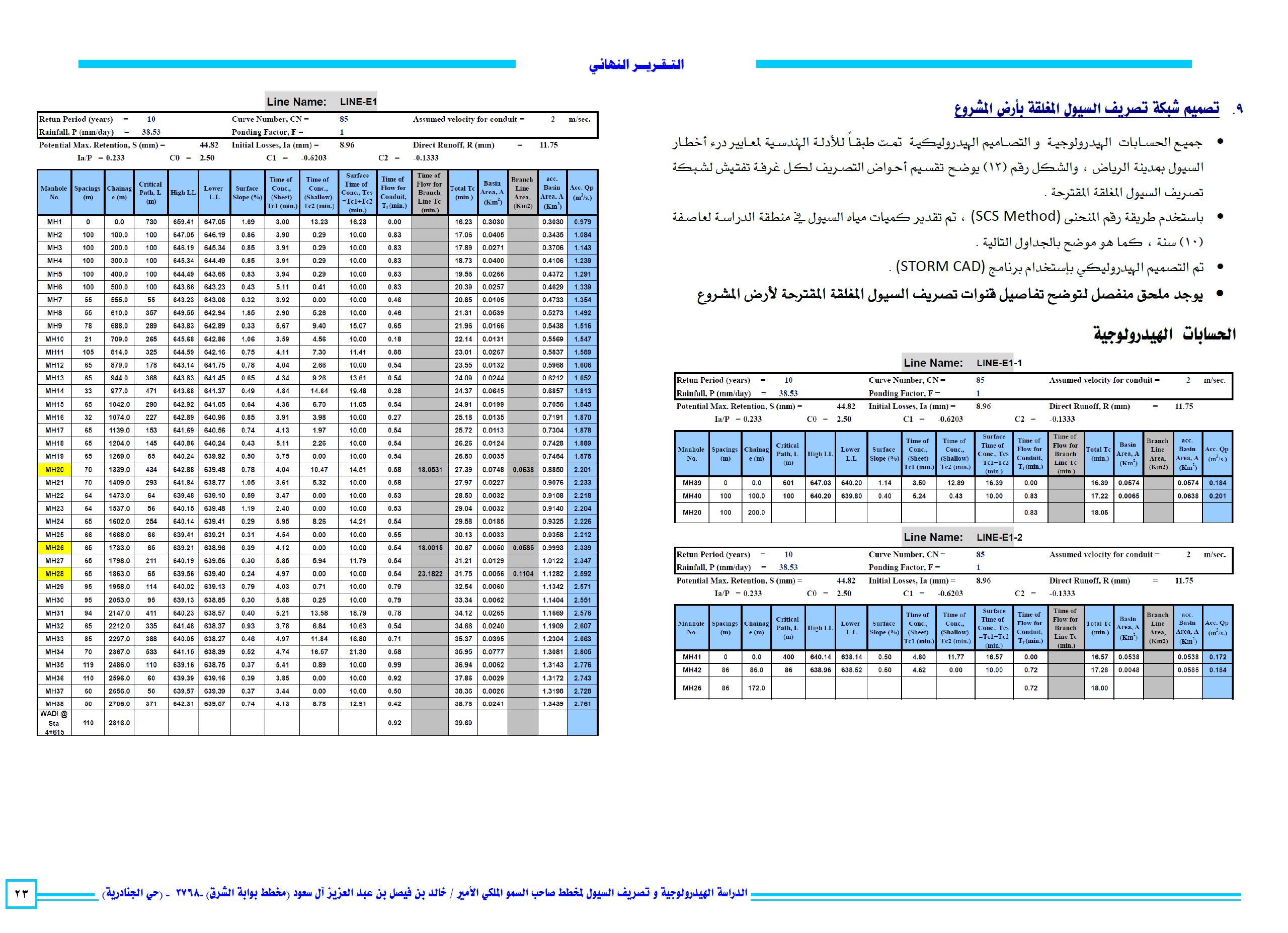 - تصميم شبكة تصريف السيول المغلقة بارض المشروع