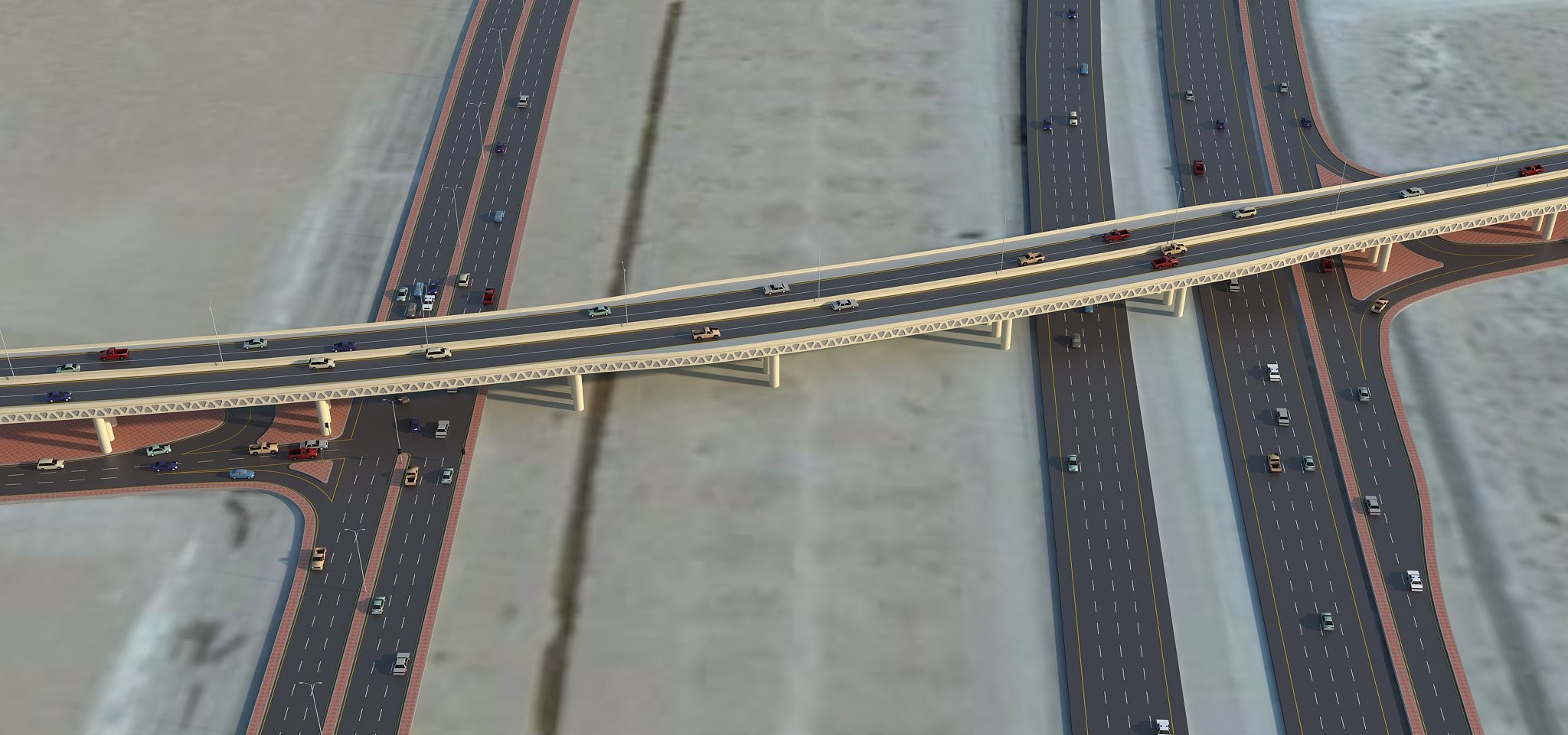 - (1) الجسر مكون من حاجز خرساني عرض (70 سم) ومسار من حارتين في كل اتجاه بعرض (3.6متر) مع وجود حارة طواريء في كل اتجاه بعرض (2.5 متر).