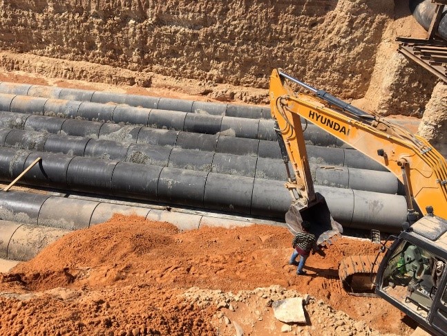 تم الإشراف علي تنفيذ مشروع عبارة السيول أسفل طريق بن عطوة مع عمل ترحيل لخط المياه قطر 400مم وتكسية خرسانية لحماية الميول والمشروع عبارة عن تمديد مواسير العبارة بقطر 1600 مم أسفل طريق بن عطوة بعمق يصل إلي 12 متر أسفل الطريق بعدد ( 8 فتحات ) مع تنفيذ المداخل والمخارج وعمل خرسانات الميول أعلي المداخل والمخارج ، كما تم تنفيذ اعمال تدعيم خط المياه قطر 2000 مم والقائم أعلي أعلي عبارة السيول عن طريق تنفيذ خوازيق خرسانية مسلحة بعمق 12 متر أسفل منسوب خط المياه وعمل كمرات حديدية لحمل الخط القائم وذلك بالتنسيق مع شركة المياه الوطنية ، كما تم تحويل مسار خط مياه قائم متعارض مع تنفيذ العبارة ويمر في عبارة خرسانية وقطر الخط 400 مم مع عمل تخفيض لمنسوب هذا الخط ، كما تم عمل جدران إستنادية بجوار طريق صلبوخ نظرا لتداخل الطريق مع مسار قناة تصريف السيول التي تغذي العبارة .